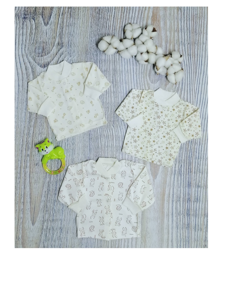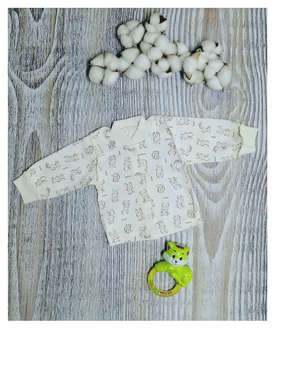 Кофточка без воротника, с длинным рукавом на манжетиках, на кнопочках спереди. Рисунки в каждой партии и упаковке могут отличаться.