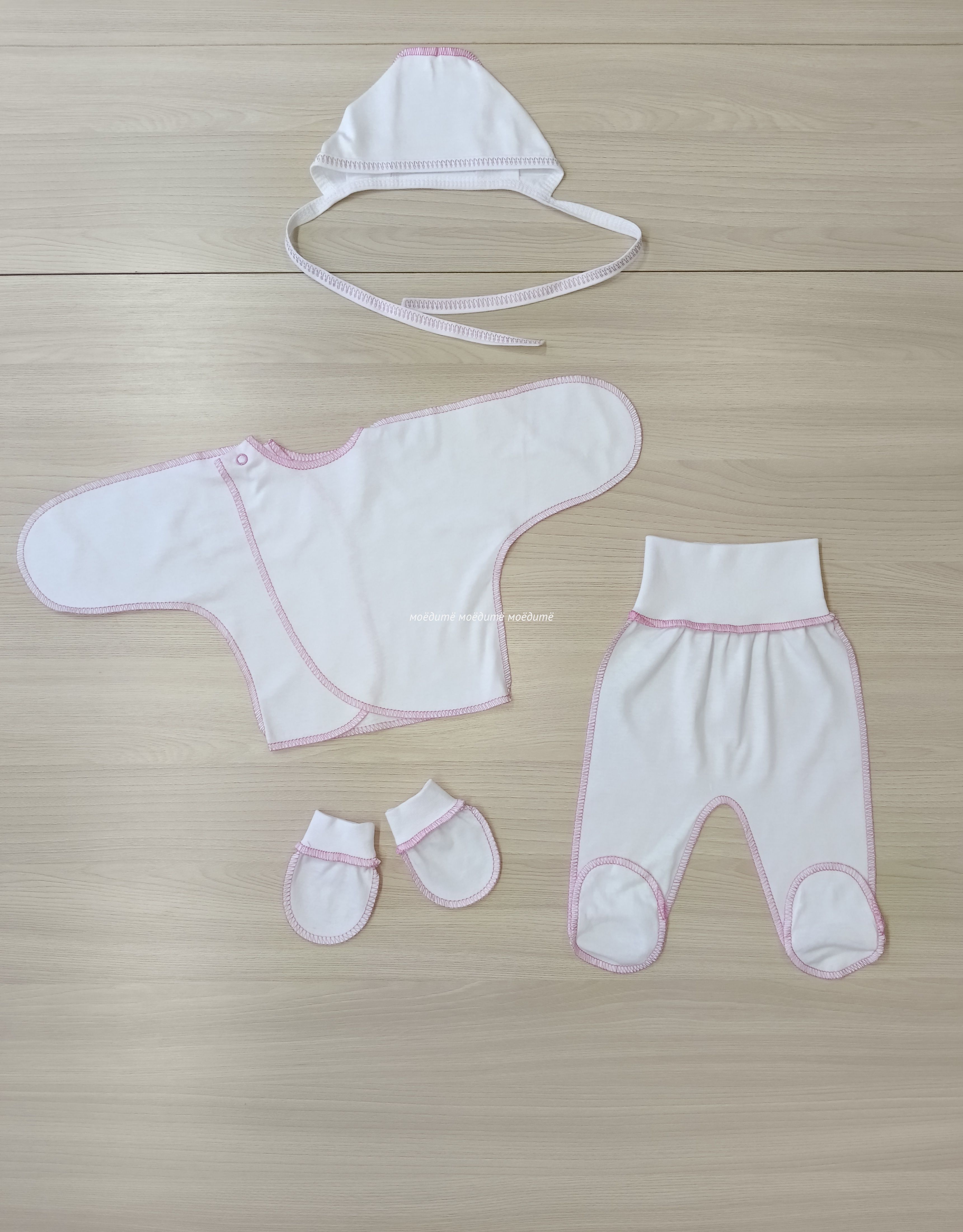 "МоёДитё" комплект на выписку из 4-х предметов белый + розовый КП025 "Магнолия"